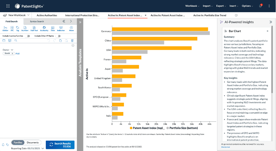 포트폴리오 최적화, M&A 대상 평가, SEP 라이선스 가능성 평가 등 어떤 작업을 하든 새로운 AI 기반 분석 빌더와 AI 기반 인사이트를 통해 데이터에서 의미를 더 빠르고 쉽게 추출할 수 있습니다.