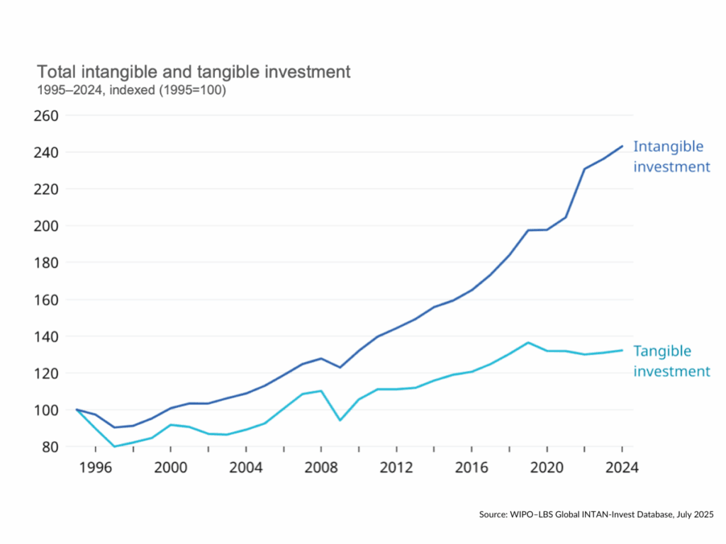 그림 : 무형 자산은 2008년 이후 유형 자산 투자를 거의 4배나 앞지르고 있습니다. (Source.)