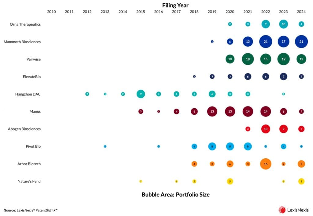 이러한 기업들은 유전자 변형, 질병 표적화, 그리고 바이오 기반 생산 공정을 가능하게 하는 기술 플랫폼을 개발하고 있습니다. 이들의 특허 활동은 생명공학 분야의 잠재적 발전 방향에 대한 통찰력을 제공합니다.